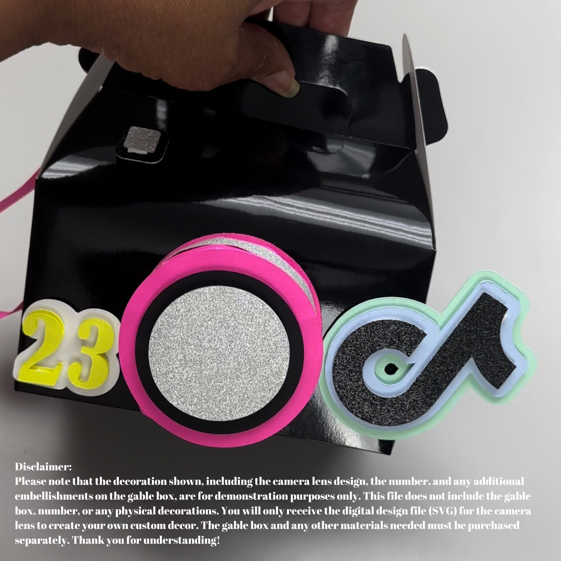 Transform your gable boxes into eye-catching camera-themed party favors with our Camera Lens SVG! This digital download provides all the elements needed to craft the perfect lens to adorn your gable boxes for any occasion. Please note that this listing only includes the SVG file for the camera lens. Any other decorations or gable boxes shown are for demonstration purposes and are not included.