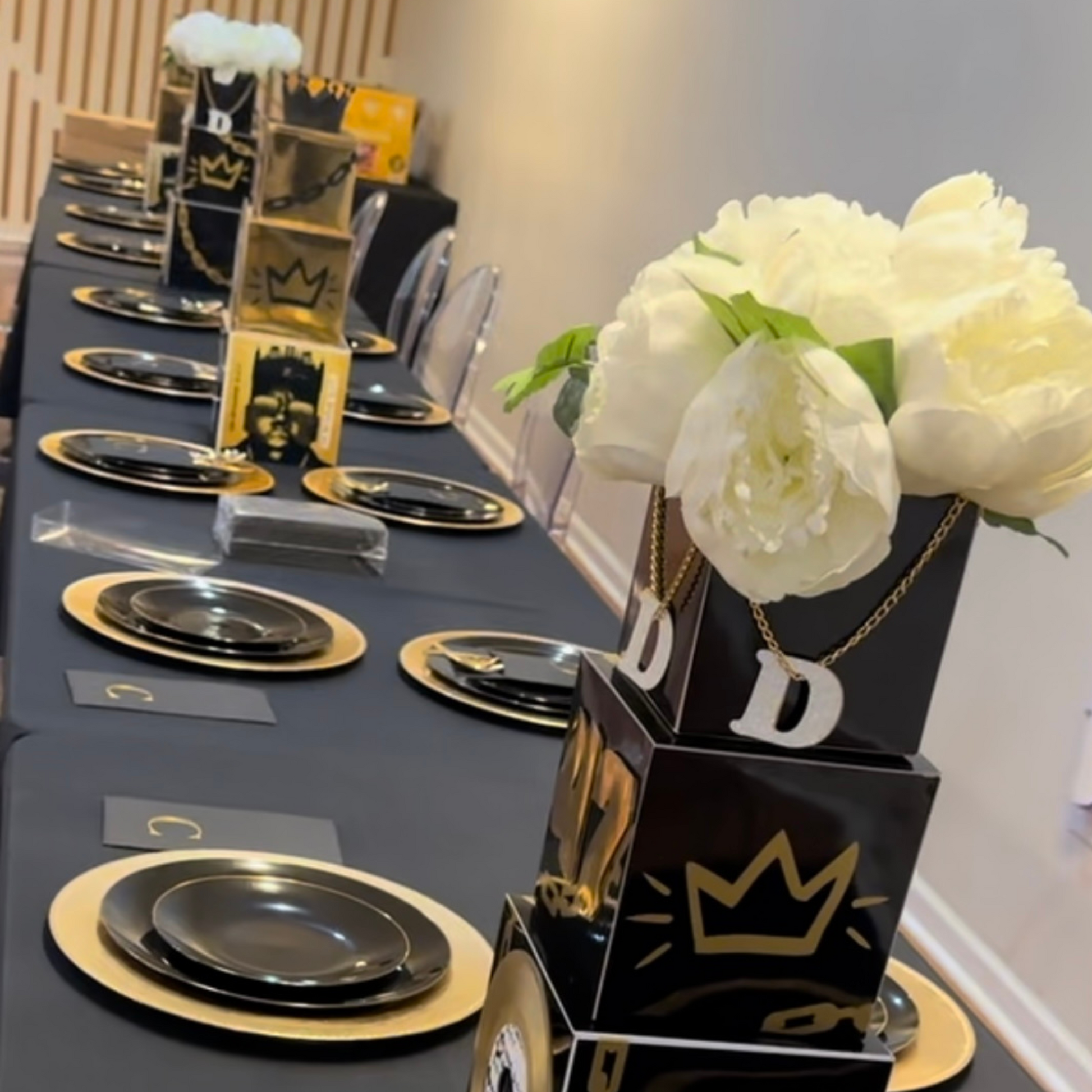 Bring the authentic flair of 90s hip-hop to your celebration with a centerpiece that not only decorates but also celebrates the era. Whether you're drawn to the elegance of crowns, the passion of beats, or the glamour of gold chains, your centerpiece will be a focal point that’s as memorable as the music.