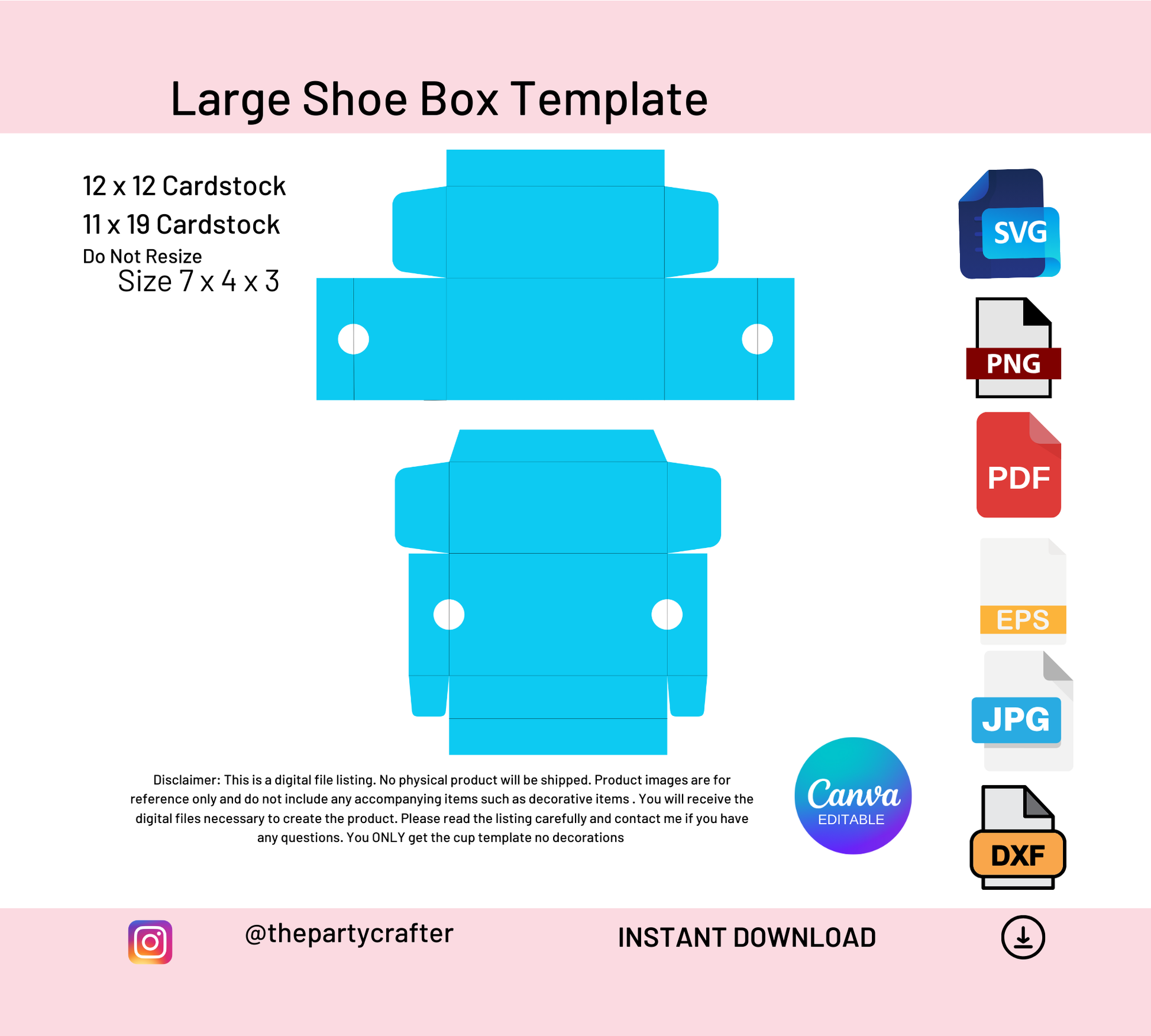 Large Shoe Box Template | Cricut Cut Files | Sneaker Box Template SVG | Party Favors Box | DIY Favor Box